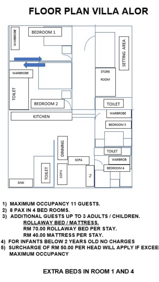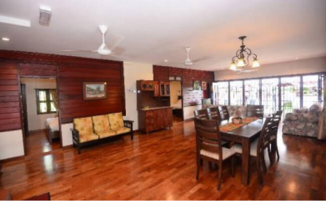 - 2 bedrooms with attached toilets (1 bedroom with 1 queen size bed & 1 bedroom with 2 super single beds)